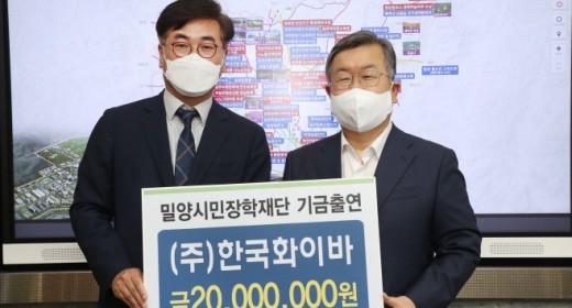 (재)밀양시민장학재단은 지난 12일 (주)한국화이바(대표 이진광)와 향토인재 양성과 명문학교 육성 지원 등을 위한 장학기금으로 2000만원을 전..